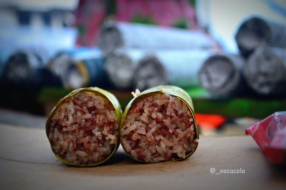 dimasukan ke dalam bambu, kemudian dibakar hingga matang.